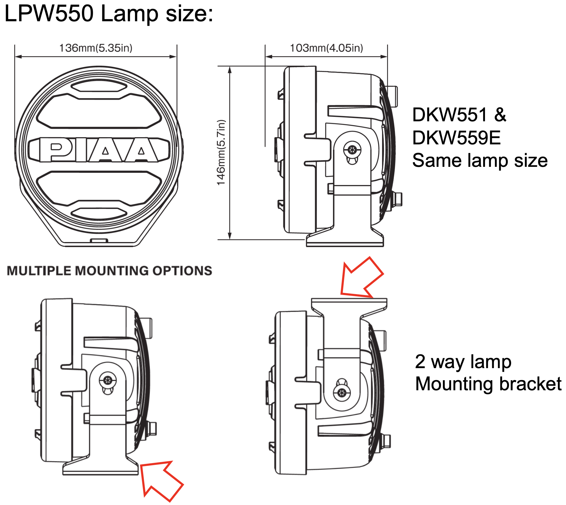 PIAA DKW551 eru hvít og gul 5″ LED ljós í fyrirferðarlítilli og fjölhæfri hönnun sem hentar jafnt fólksbílum, vörubílum, jeppum, torfærutækjum, sem og fjórhjólum og mótorhjólum. Ljósin eru hluti af línu PIAA af nettum LED-ljósum sem sameina öfluga lýsingu, mikla endingu og breitt notkunarsvið. Hægt er að stilla ljósin bara gul, bara hvít eða bæði gul og hvít.
