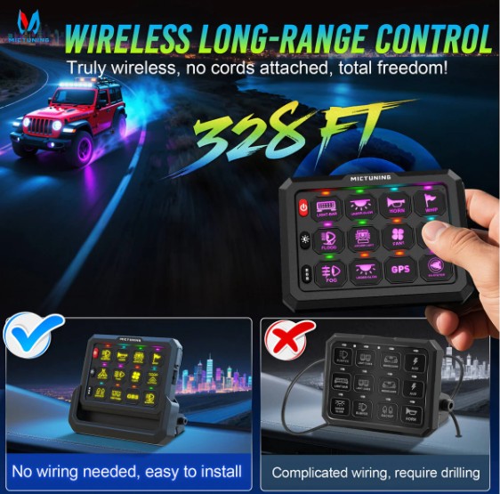 Þráðlaus stýring: Öryggjaboxið getur tengst allt að 4 rofaborðum þráðlaust með drægni allt að 100 metrar við kjöraðstæður.