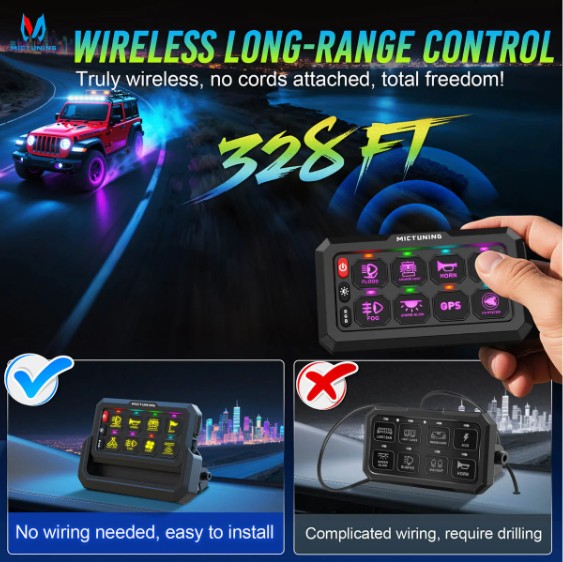 Þráðlaus stýring: Öryggjaboxið getur tengst allt að 4 rofaborðum þráðlaust með drægni allt að 100 metrar við kjöraðstæður.